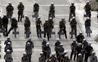 Једино су полицијске униформе и црне јакне у цивилу, украшавале улице Атине.
