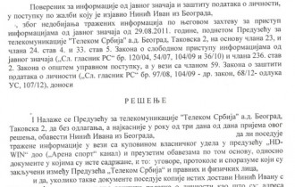 Телеком је и у овом случају одбио да објави уговор, уз образложење да Телеком није орган јавне власти