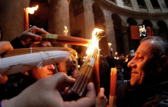 Благодатни огањ се на чудесан начин појављује у Храму гроба Господњег уочи Васкрса