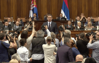 Обраћање Александра Вучића у парламенту Србије, у коме је саопштио да постоји могућност напада Албанаца на север Косова, и...