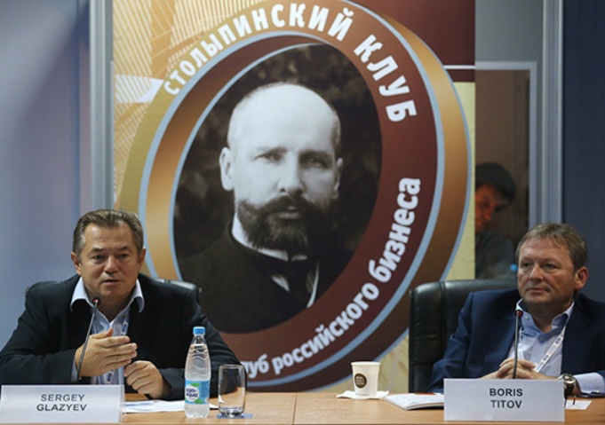 Поменуту трећу групу, Столипинов клуб, на састанку у мају 2016. заступали су Сергеј Глазјев и Борис Титов (на слици доле), копредседавајући Пословне Русије и руски „пословни омбундсман“ од оснивања те функције у 2012. Титов и Глазјев (Путинов саветник за Украјину и друга питања) су оснивачи Столипиновог клуба у Русији. Године 2012. Глазјева је Путин, тада премијер, именовао на место координатора рада федералних агенција за развој царинске уније Белорусије, Казахстана и Русије, данас Еврозијске економске уније. Титов, који је и лидер Партије раста, успешан је руски предузетник који се у последњим годинама окренуо раду на унапређењу различитих државних економских политика, често се гласно супростављајући Кудриновим слободнотржишним либералним идејама. Важно је истаћи да је Титов такође копредседавајући Руско-кинеског пословног савета.