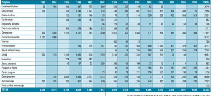 У даљем тексту намеравам се фокусирати на податке које сам прикупио из финансијских извјештаја Фонда за Отворено друштво за период 1993.-2006. година. Из табеларног приказа укупних донација можемо извести сасвим аргументоване закључке који одлично кореспондирају са неспорним чињеницама.