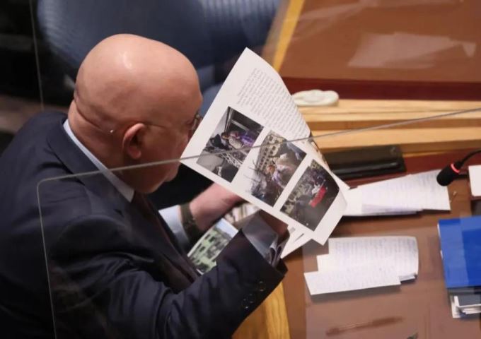 Василиј Небензја, стални представник Руске Федерације при УН, држи документа док говори током састанка Савета безбедности УН на коме се расправља о сукобу између Русије и Украјине у седишту УН у Њујорку, 11. март 2022. – Фото: AFP/Michael M. Santiago