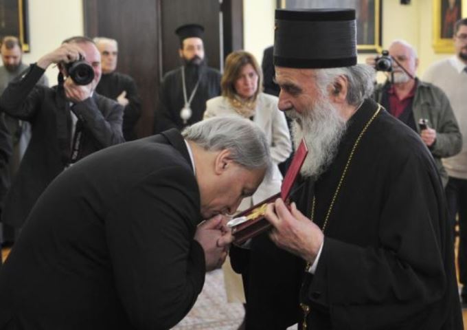 Леонид Решетњиков током пријема Ордена цара Константина, највишег одликовања СПЦ, којим га је одликовао блаженопочивши патријарх Иринеј – Фото: Танјуг/СПЦ