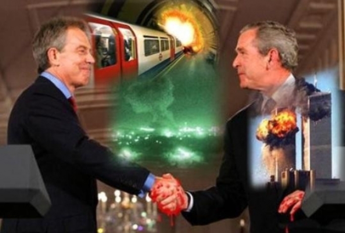 Када гледамо некадашње састанке Блера и Буша, онда заправо гледамо у два витеза тајних редова, Блер као ‘Суверени витез Малте’ и Буш као ‘Витез Еулогије’. Његов наслов лежи у мртвачком сандуку, у седишту друштва ‘Лобања и кости’, на Универзитету Јејл. Обојица заговарају да су им демократија и слобода на првом месту, међутим обојица су се заклели крвљу египатским, вавилонским јеврејским боговима демонима. Они су се заклели на патњу до смрти и да неће разоткрити тајне њихових масонских редова. Обојица су интегрирани у стару глобалну илуминатну мрежу, која је опседнута смрћу и убиством.