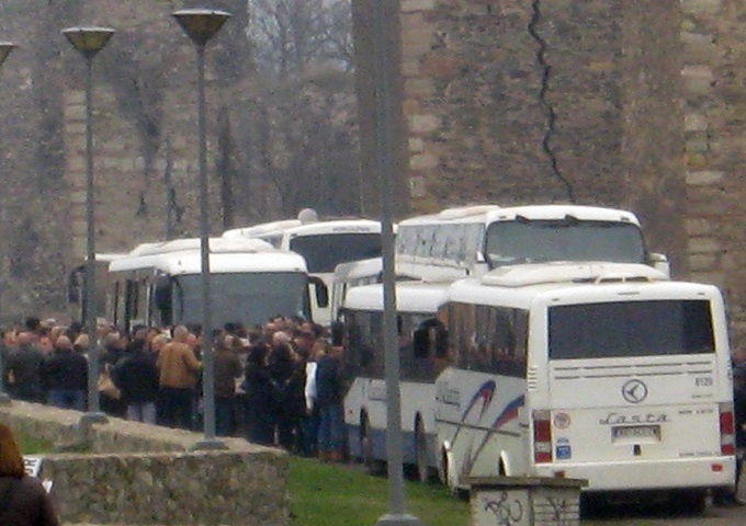 Почео сам да бројим. Аутобусе, не људе, наравно. Избројао сам до 47, али видео сам да пристижу још по неки из правца Панчево-Ковин. Све у свему сматрам да их је било између 50 и 60, тако да су информације о преко 150 аутобуса које су се појавиле на друштвеним мрежама вероватно претеране. Бар их код тврђаве није било толико. Но, да их је било и 5, превише је…