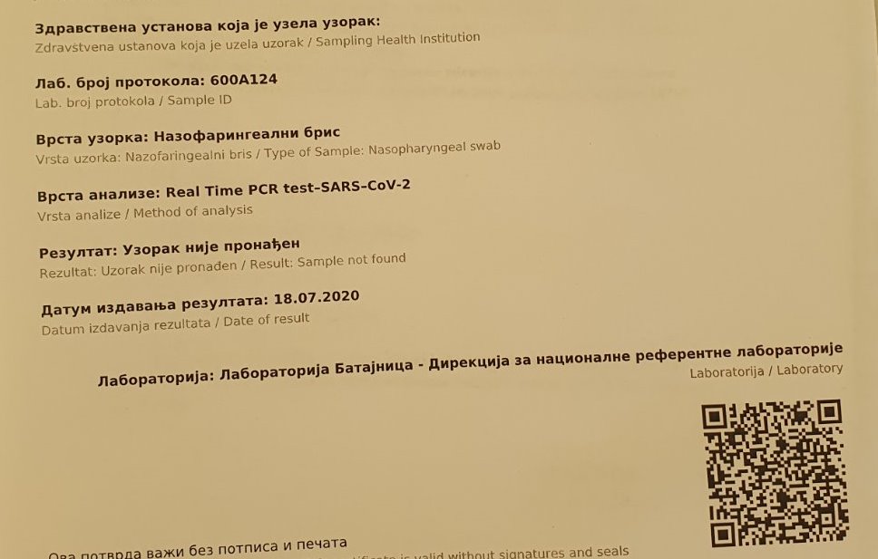 Какви су то наши тестови, ако их нико у окружењу и Европи не признаје као валидне? И који је, онда, смисао тих објава о броју тестираних и броју инфицираних? С тим у вези и питање како „кризни штаб“ објављује податке о јучерашњем тестирању, када на примеру своје супруге видим да већ пет дана не добија резултате поновљеног PSR теста? Шта значи то?