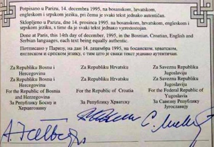 Иначе, да би знали о чему говоримо, колико се зна на свету постоји укупно осам примерака оригиналног Дејтонског споразума (босанско-херцеговачки, српски, хрватски, амерички, немачки, француски, руски и британски), и сви су изворно написани на енглеском језику.