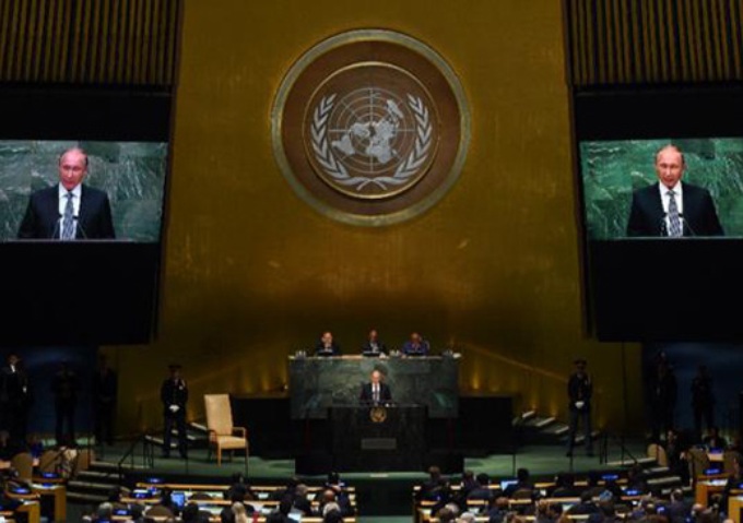 Putin-UN 1Руски лидер Владимир Путин – наступивши на јубиларном 70-ом заседању Генералне скупштине УН – упозорио је да се проблем избеглица и миграната може решити једино обновом уништене државности земаља из којих долазе.