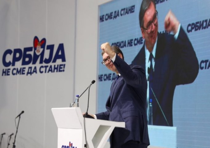 Вучић на предизборном скупу „Србија не сме да стане“ у Лесковцу – Фото: Снимак екрана/ Б-92