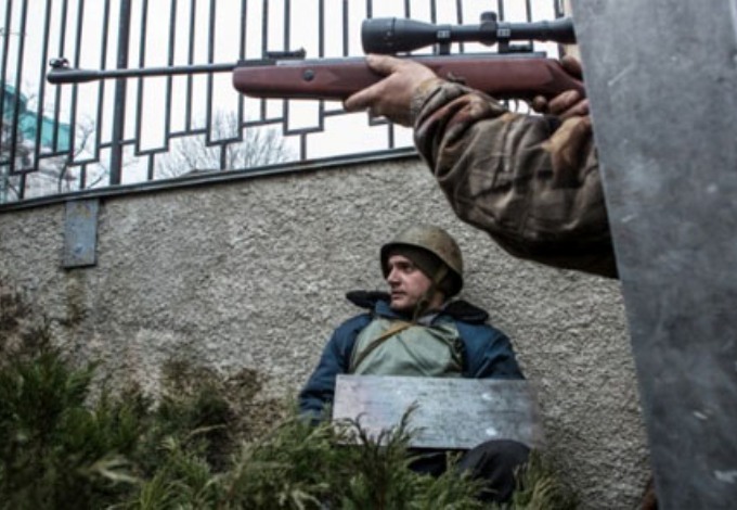 Слична ситуација се поновила на Криму. Иако је свима већ било јасно да су грађани Крима потпуно опредељени за повратак у сасатав Русије, Запад је послао снајперисте на ово мирно полуострво уочи одржавања референдума. На Криму су војни објекти Украјине и Русије једни поред других. Пуцано је из зграде у изградњи, преко пута украјинског војног центра и мета су биле локалне кримске јединице за самоодбрану као и сам војни центар. Јединице за самоодбрану обавештене су да је у делимично празној згради откривена наоружана група. Када су њени припадници кренули да изврше проверу, на њих је отворена ватра, претпоставља се из снајпера и том приликом је пуцано у два правца са једног места. Један припадник јединице за самоодбрану је убијен, а други рањен. Један украјински војник из војног истраживачког центра такође је убијен, док је други рањен, саопштила је полиција.(5) Пучисти у Кијеву су затим одобрили војницима употребу ватреног оружја.(6) Запад је желао по сваку цену да изазове сукоб између украјинске војске и руског народа на Криму. Међутим Руси су успели да „охладе усијану главу“ команданта украјинске морнарице Сергеја Хајдука који је преносио наређење украјинским војницима да пуцају. Он је приведен од стране тужилаштва у Севастопољу и убрзо пуштен.(7)