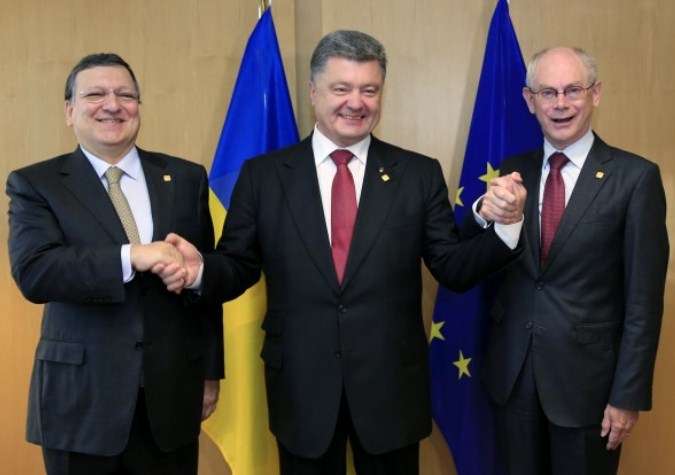 ЕУ је, у међувремену, наставила да “гура“ пројекат “Источно партнерство“. Жозе Мануел Барозо, председник Европске комисије, током марта је сумирао размишљање ЕУ о Украјини рекавши: “Ми имамо дуг, дужност солидарности са земљом и ми ћемо радити што ближе са њима“. И наравно, 27. јуна, ЕУ и Украјина потписале су економски аранжман који је Јанукович одбио седам месеци раније. Такође у јуну, на састанку министара спољних послова земаља чланица НАТО, договорено је да алијанса остане отворена за пријем нових чланица, иако су се министри уздржали да помену Украјину по имену. “Ниједна трећа страна нема право вета на проширење НАТО“, рекао је Андерс фон Расмусен, генерални секретар НАТО. Министри су се такође договорили да подрже различите мере на побољшању украјинских војних капацитета, попут контроле и команде, логистике и одбране. Руски лидери су, природно, устукнули на ове акције; реакција Запада ће лошу ситуацију учинити још гором.