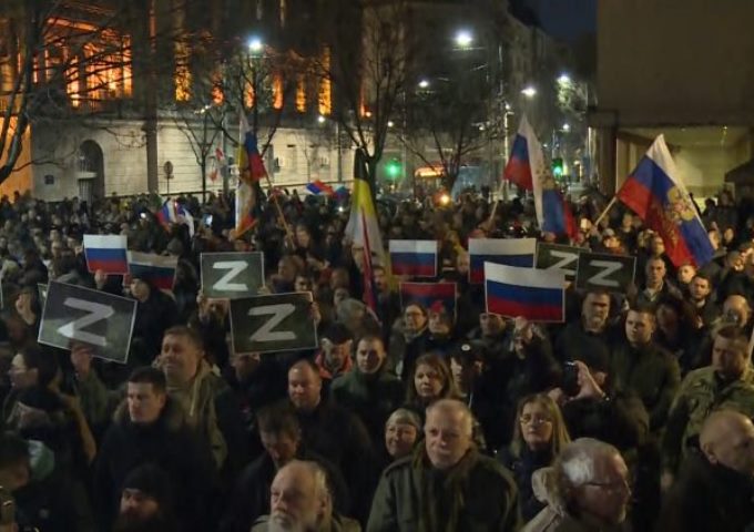 Протест подршке Русији у центру Београда – Фото извор: Н-1/Снимак екрана