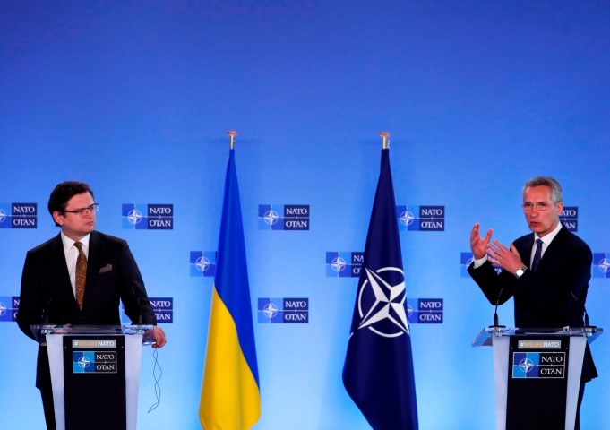 Украјински министар спољних послова Димитро Кулеба и генерални секретар НАТО алијансе Јенс Столтенбер, Брисел, 13. април 2021. – Фото: POOL/Francisco Seco