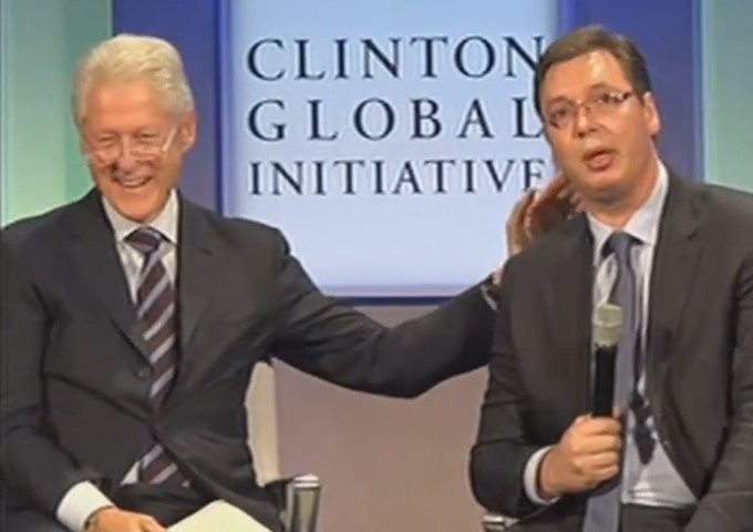 Управо је Вучић то урадио: он је поставио Србију на оптуженичку клупу Клинтонове фондације и америчке јавности – негујући причу о себи као „политичару мира и реформи“, пустио је на вољу ништаријама попут Ћамила Дураковића из Сребренице и нарученим пропагандистима са рециталом о „Сребреничкој трагедији“. И Бакир Изетбеговић је похвалио Вучића због наводне храбрости и то управо на истој конференцији, упркос чињеници да су Бакирови људи, у вези са том темом и на месту где је сценарио направљен, покушали да га линчују. Данас – сви српски непријатељи га хвале.