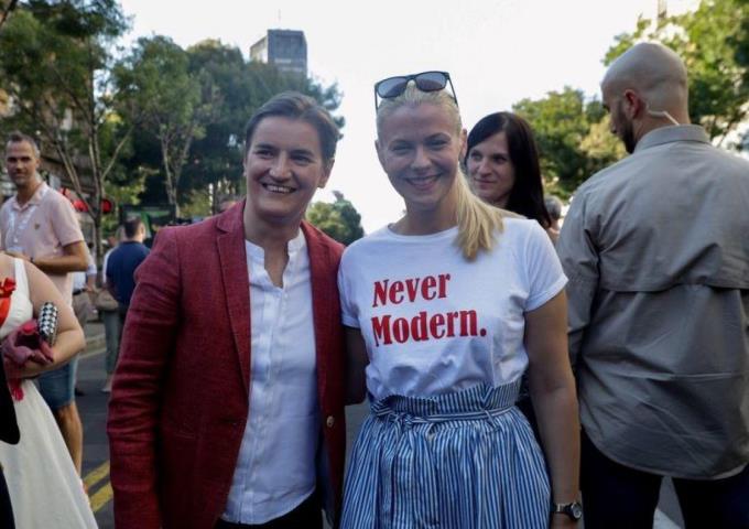 Премијерка Ана Брнабић (лево) са партнерком Милицом Ђурђевић на тзв. „Паради поноса”, Београд 15. септебар 2019. – Фото: Андрија Вукелић
