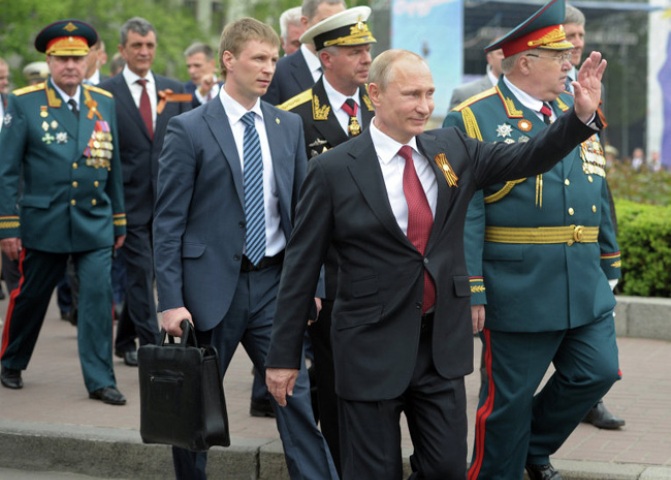 Boris-Aleksic 1Председник Русије Владимир Путин је у петак 9. маја посетио Севастопољ, где је севечано обележен Дану победе као и седамдесет година ослобођења Града хероја од немачких нациста. Председник је присуствовао војној паради копнених, ваздухопловних и поморских снага руске војске. Путин је извршио и смотру ратних бродова, који су учествовали у паради. Заједно с њим су били министар одбране Сергеј Шојгу и командант Црноморске флоте адмирал Александар Витко.[1]Више од 150 хиљада људи је са одушевљењем пратило спектакл руских оружаних снага у Севастопољу. Крим је поново део Русије, па је славље било још веће. Срећан сам што сам овде у херојском Севастопољу на овај свети дан и што заједно са свима вама обележавам главни празник наше земље. Подвиг генерације која је згазила нацизам увек ће бити пример храбрости, пожртвованости и несаломиве снаге воље“ истакао је Владимир Путин и додао „Уверен сам да ће 2014. година ући у његов летопис, у летопис читаве наше земље као година када су народи који овде живе чврсто одлучили да буду заједно са Русијом. Тиме су потврдили своју оданост историјској правди и сећању на наше претке. Предстоји нам много посла, превазићи ћемо све тешкоће јер смо заједно, а то само значи да смо постали још јачи. Честитам вам празник Велике Победе!“[2]