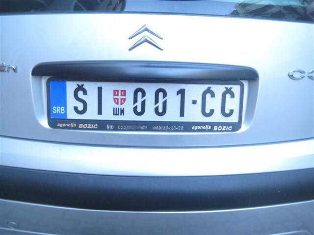 6) Италија: два слова, три цифре, два слова. Српско решење највише личи баш на ово. По овом методу Србија је са својих 13 ћириличних слова могла да има 28.561.000 различитих регистарских таблица, и још да једним ударцем убије две муве: и да користи своја ћирилична слова, и да буде подударна са Европом! Овај случај најбоље показује недобронамерност и подмуклост оних који су о таблицама одлучивали! Важније им је било да имају нешто што Европа не познаје – Ž, Š, Č, Ć, Đ, него да имају слова свог народа! Ми не верујемо да је овде одлучивано без утицаја изван Србије! Ово треба испитати и са становишта корупције! Да ли је неко овде зарадио…