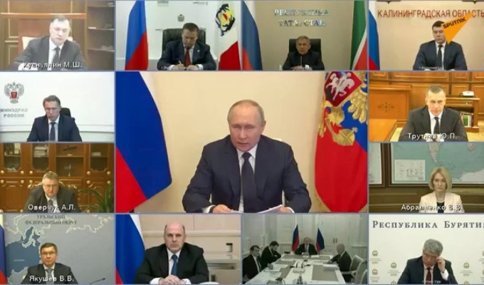 Још једном понављам: садашња ситуација је, несумњиво, тест за све нас. Сигуран сам да ћемо га проћи достојно и да ћемо вредним радом, заједничким радом и међусобном подршком превазићи све тешкоће и постати још јачи, као што је то увек било у историји хиљадугодишње Русије. За то, за такав посао, желим да вас подстакнем.