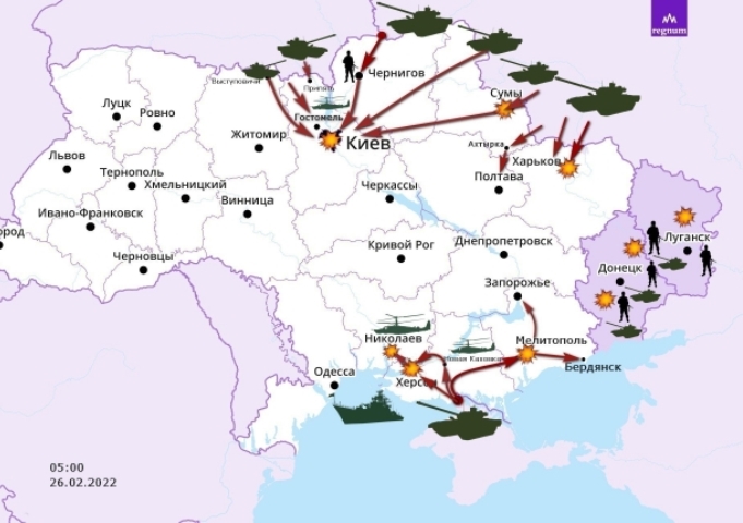 Правци удара руских снага током интервенције у Украјини – Фото извор: Факти