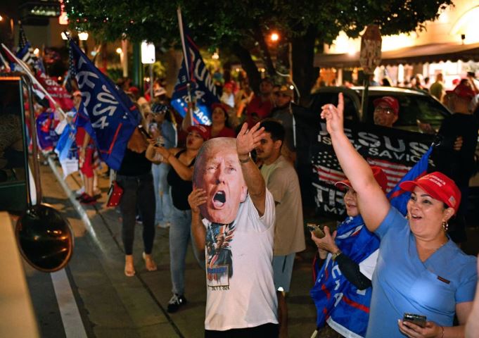 Трампове присталице прослављају победу испред ресторана у Мајамију, 5. новембар 2024. – Фото: Silvio Campos/AFP/Getty Images