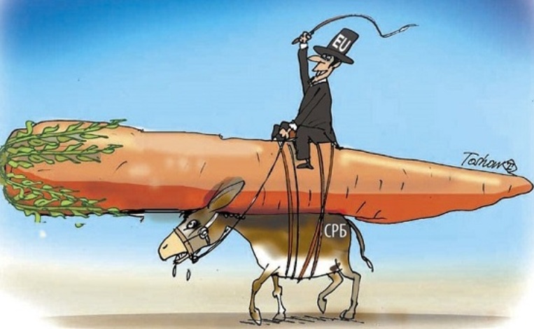 Шта ће Србија заузврат добити када на све пристане? Реформе и економске напредовање? Пуноправно чланство? Не, ништа од тога. Циљ целог овог процеса и јесте да се Србија одрекне Косова, а да заузврат не добије ништа. Када би западне земље тако плаћале за спровођење својих спољнополитичких циљева, банкротирале би кроз годину дана. „Империја се постаје на гробљу пропалих нација“, писао је Леополд фон Ранке. На крају, чак и да ЕУ има неке озбиљне планове о економској помоћи Србији (а нема их), питање је како би их извела!? ЕУ је у најдубљој кризи од оснивања, а стање, како на економском тако и на политичком плану ће најмање наредних пола деценије бити све горе. Не постоји ниједна независна дугорочна процена (изузимајући самохвалисање ЕУ-званичника и терцирање аналитичара које они плаћају) о томе како ће се постојећи лоши трендови унутар ЕУ променити до 2020. године. Доказ озбиљне кризе унутар ЕУ је и немачко-британски сукоб на скупу у Виљнусу око кључне теме о којој се расправљало: оружаних снага уједињене Европе. Велика Британија (као и још један део чланица традиционално таласократски оријентисаних) је чврсто на позицијама да гарант европске безбедности треба да буде НАТО. Немачка показује да програм „Берлин плус“ није схватала као циљ, већ као средство за даље војно интегрисање европских земаља. На крају, зашто би ЕУ била војно зависна од САД и плаћала америчке војне авантуре по целом свету када су њени геостартегијски циљеви сасвим другачији.