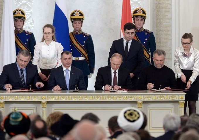 Руски председник Владимир Путин на церемонији потписивања Уговора о присаједињењу Републике Крим и Севастопоља Русији, 18. март 2014. – Фото: kremlin.ru