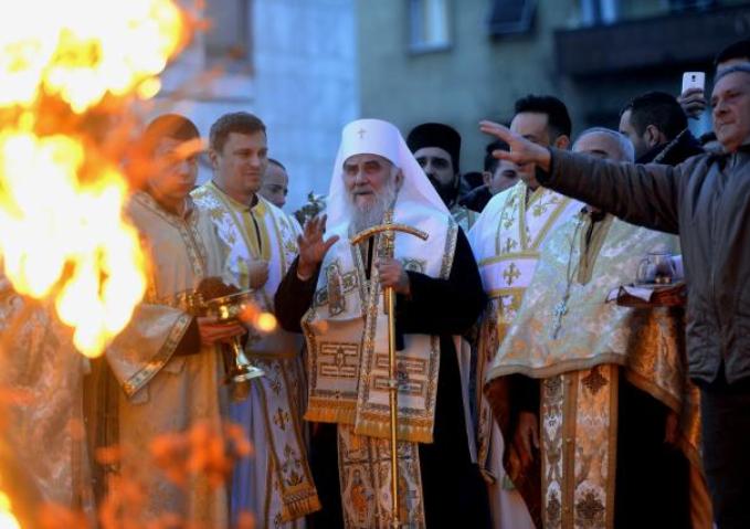 Патријарх српски Иринеј предводио је освећење и паљење бадњака на платоу испред Храма Светог Саве.