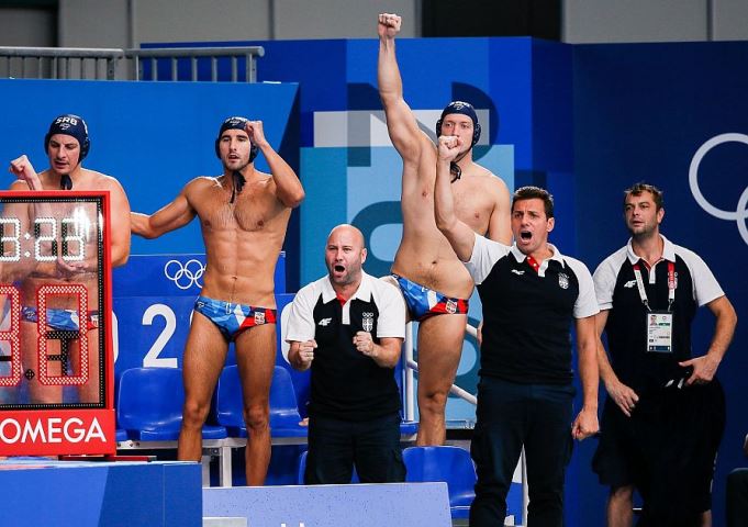 Ватерполисти Србије током меча са Шпанијом – Фото: Олимпијски комитет Србије