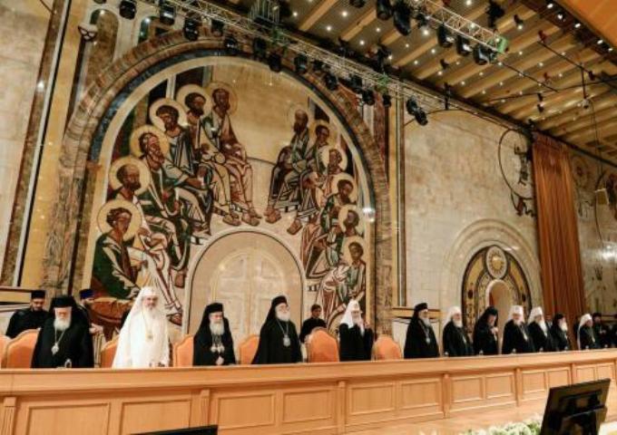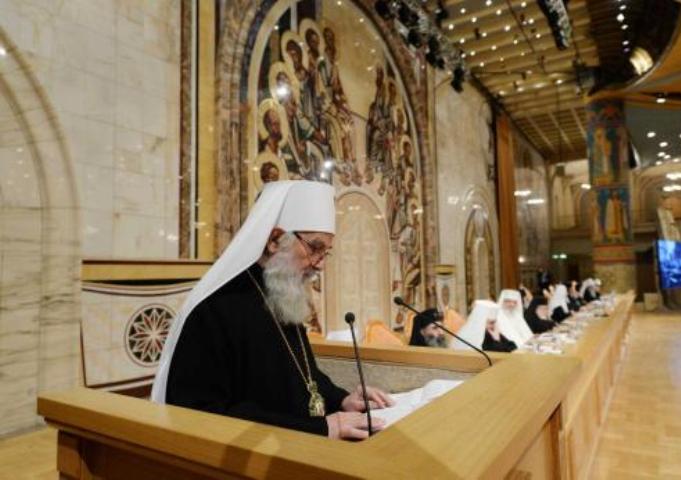 У сали црквених сабора у храму Христа Спаситеља у Москви, где се одржавао Архијерејски Сабор Руске Православне Цркве од 29. новембра до 2. децембра 2017. године, предстојатељи и представници помесних Православних Цркава обратили су се учесницима Сабора пригодним говорима на завршној свечаној седници.