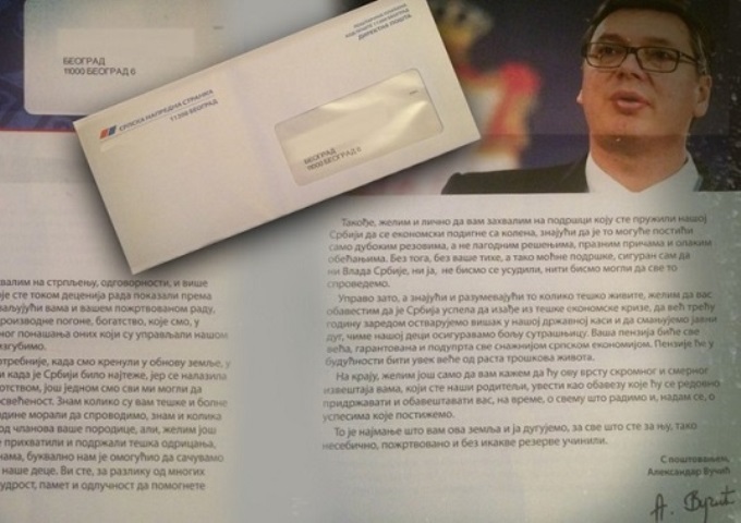 Писмо пензионерима Александра Вучића – Фото: Инсајдер
