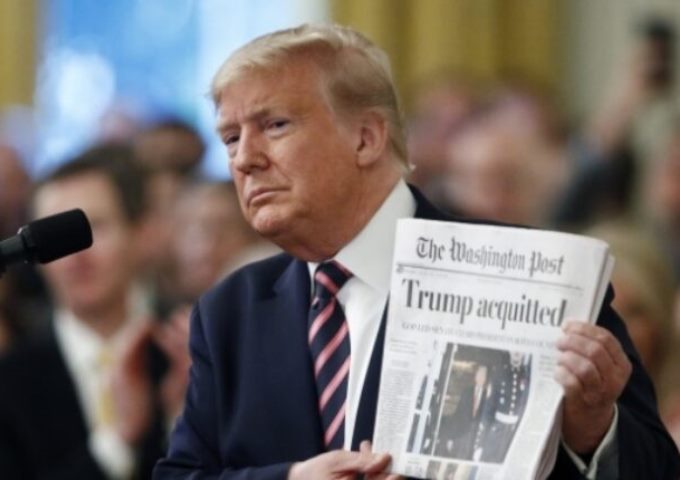 Председник САД прво је тријумфално махао насловном страном „Вашингтон поста” с речима „Ослобођен кривице”, а затим се обрушио на демократске чланове Конгреса који су покренули процес његовог опозива, оптуживши га у Представничком дому по две тачке за злоупотребу власти и опструкцију Конгреса.