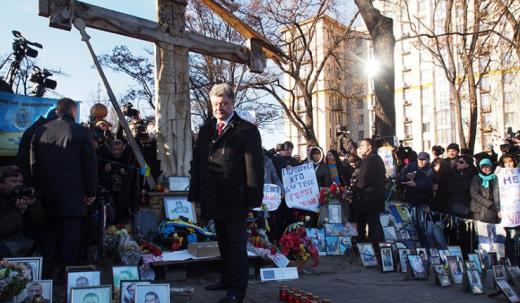 Председнику Украјине Петру Порошенку су звиждали док је полагао венац на крст „Небеској чети“ у Кијеву.